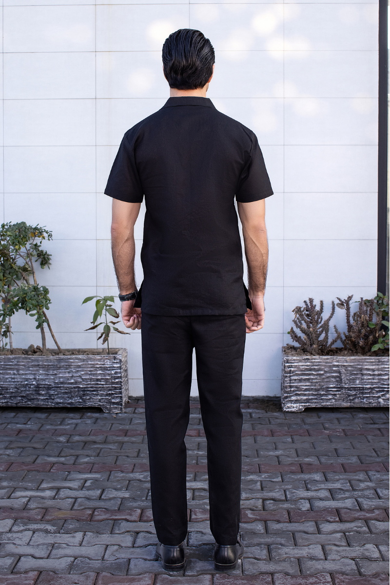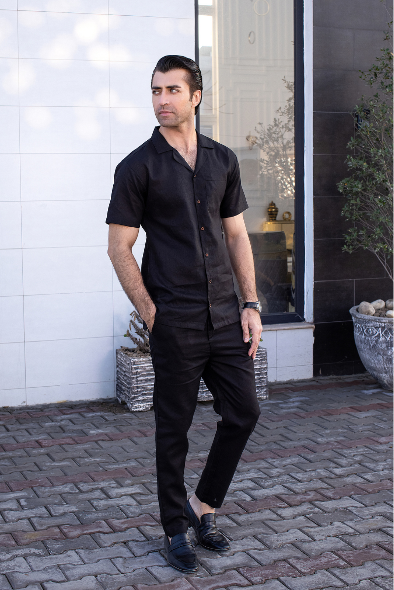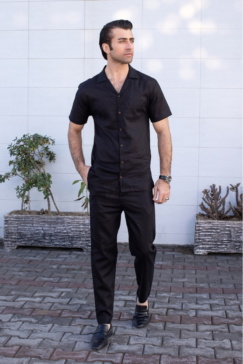 Refined, Bold, And Effortlessly Stylish—The Onyx Noir Linen Set Is Designed For The Modern Gentleman Who Values Sophistication With A Relaxed Edge. Crafted From Premium Irish Linen, This All-Black Co-Ord Set Delivers Breathability, Comfort, And A Sleek Aesthetic For Any Occasion.