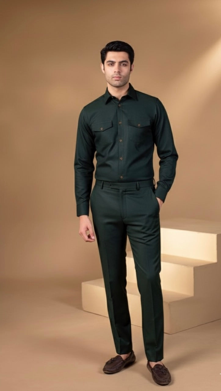 Dark Green Full Sleeves Modern Suit